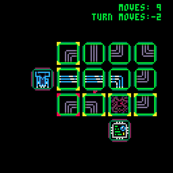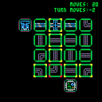 CyberTinker is a puzzle game, inspired by the Bioshock hacking mini-game, where the player is trying to establish a connection between their keycard and the device chip. In this 20-level game, different tile sets and mechanics are introduced as the player progresses through the game.